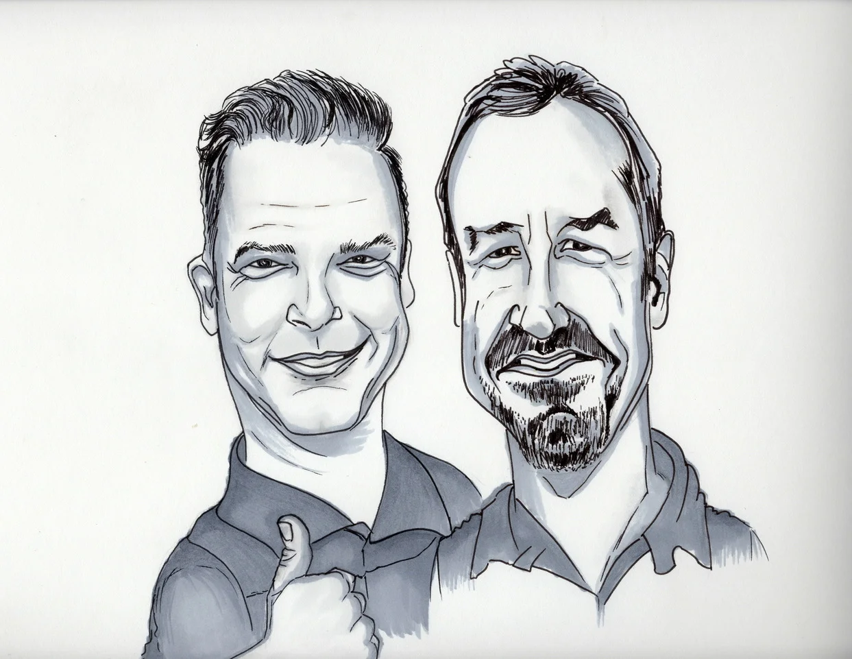 I had the privilege of being a guest on the podcast 'Run Your Life" with Andy Vasily! We had a great day together golfing, hanging out and then recording a show that will air sometime in August. Andy travels the world speaking about a number of topics, in particular mental health and living your best life. Andy asked if I would do a caricature of us together for the website and podcast, and of course I was happy to oblige!